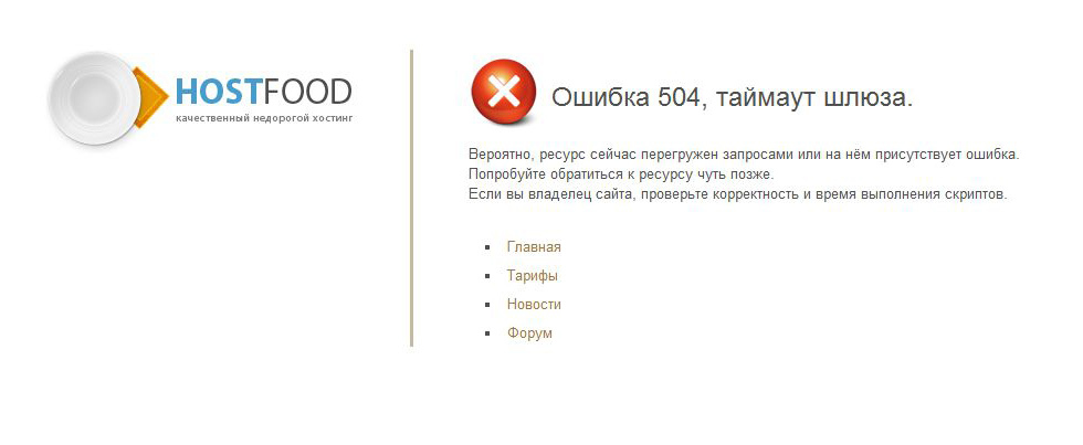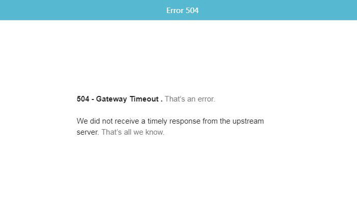 Gateway Timeout Error (перевод: «ошибка, закончилось время шлюза»);