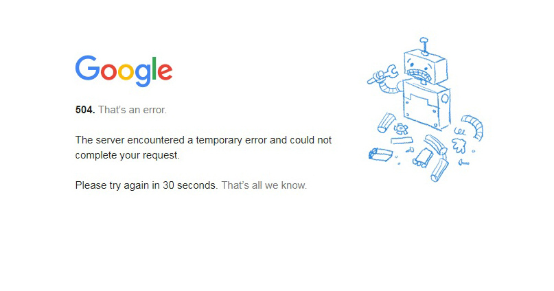 Когда Google-роботы сталкиваются с ошибкой 504 Service Unavailable (перевод: «504, сервис недоступен»), они осознают, что это лишь временная неисправность, после чего предпримут попытку повторного сканирования страницы. При недоступности сайта в течение нескольких минут роботы попытаются обратиться к кэшированной версии страницы. Но если сайт остается недоступным более 6 часов, Google начнет рассматривать ошибку 504 как значительную неисправность всего сайта, что может негативно отразиться на его SEO-продвижении.