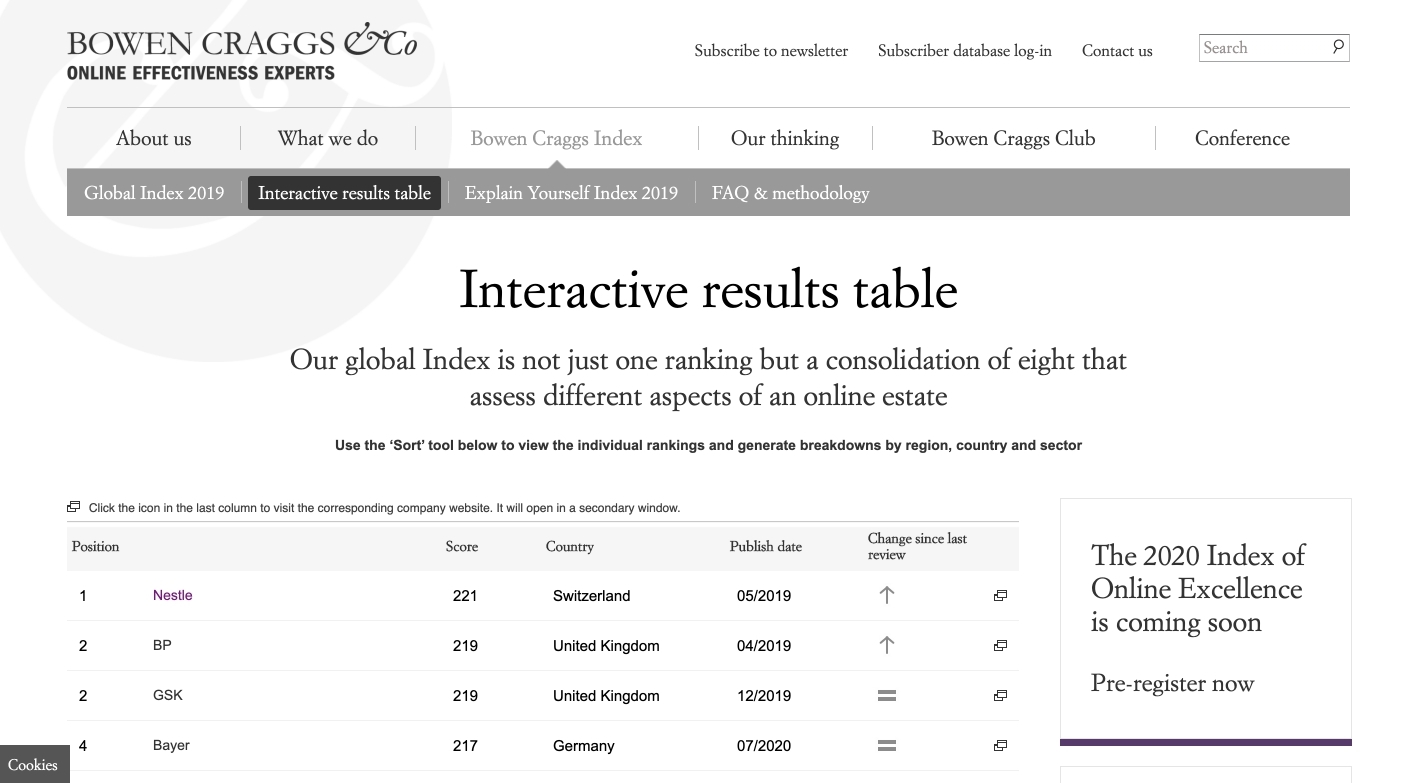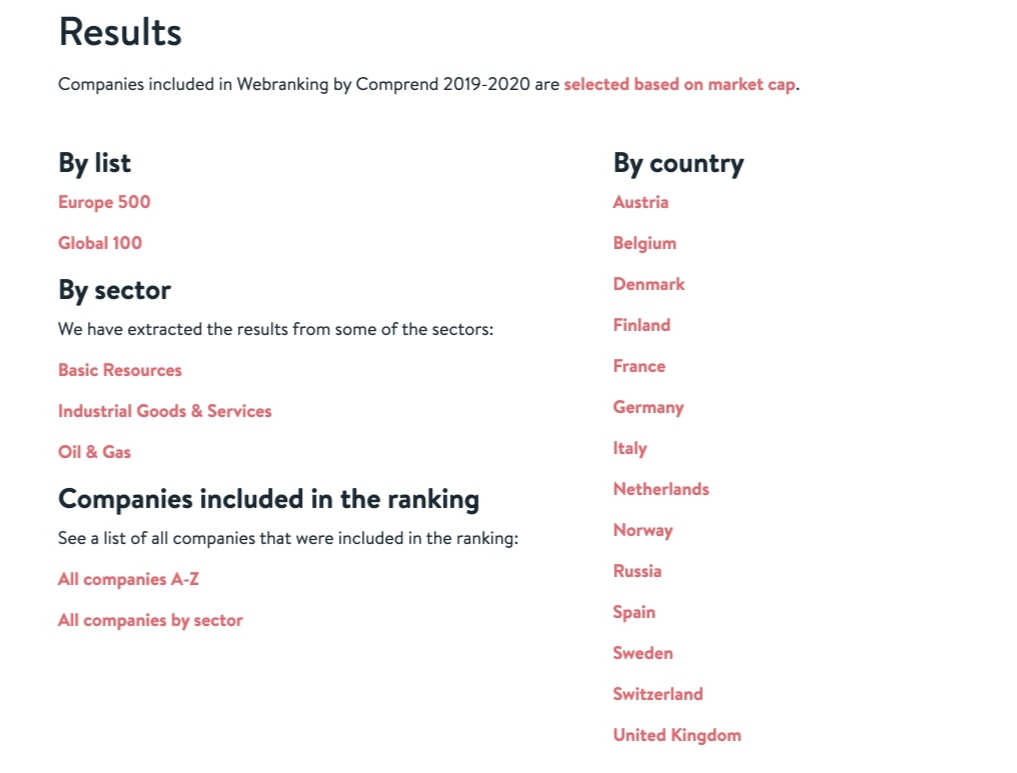 Еще один ресурс о корпоративных коммуникациях. На Comprend опубликованы рейтинги лучших корпоративных сайтов. Здесь информации побольше — есть исследования по определенным странам и отраслям.