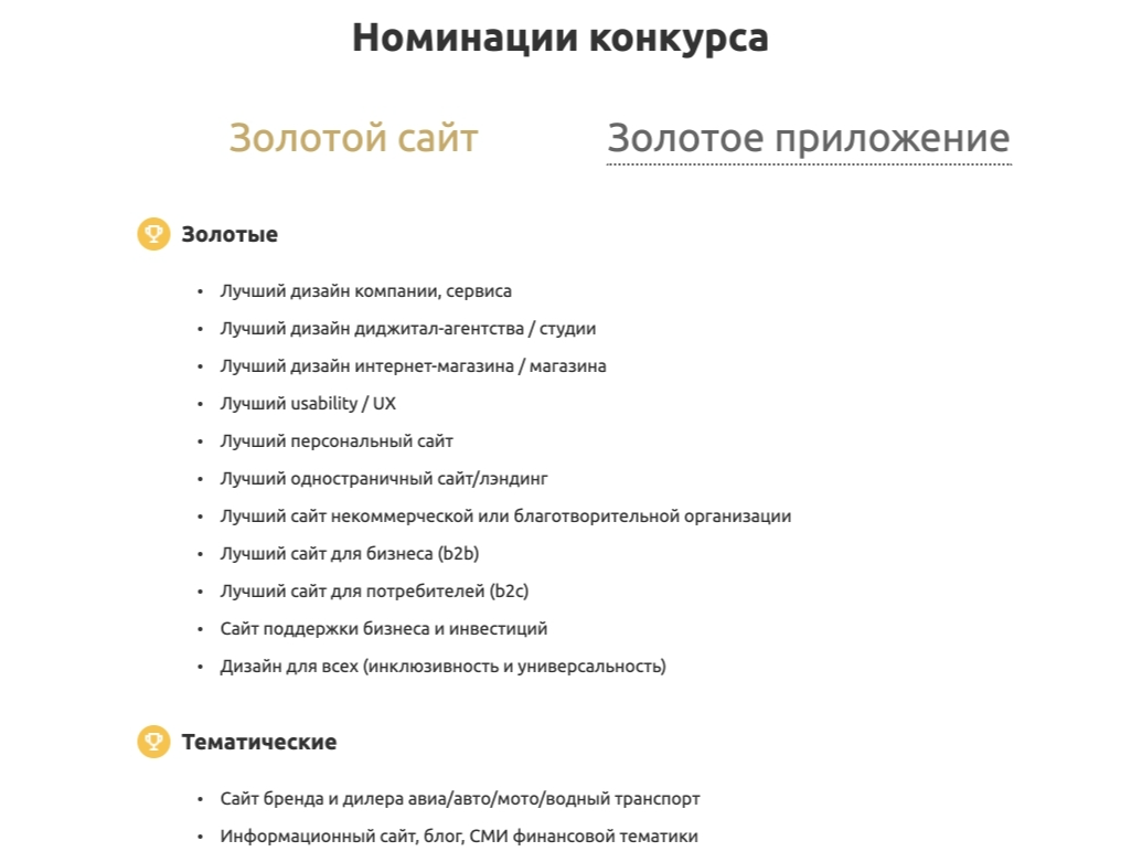 Конкурсы и премии веб-проектов — площадки, где можно найти множество современных сайтов, задающих тренды. Их много, приведу несколько примеров, которые изучаю чаще всего.