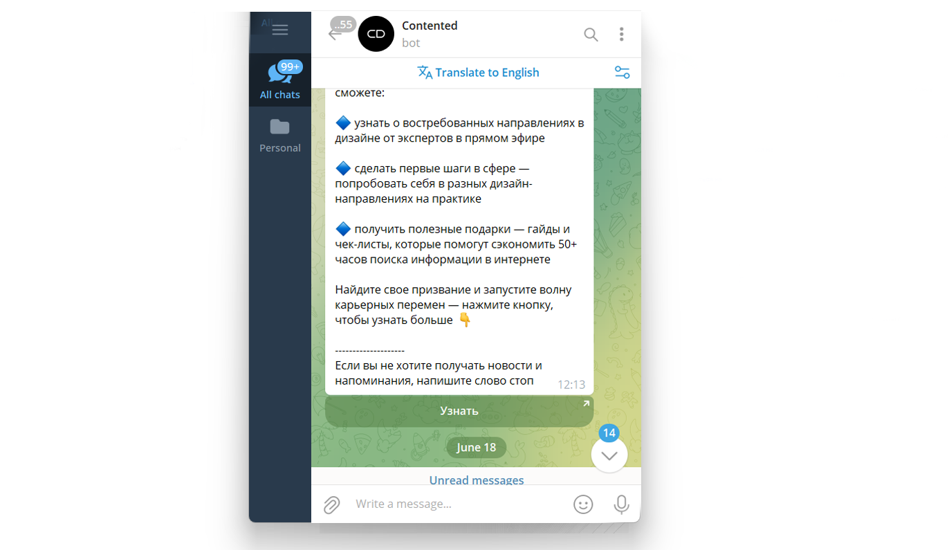 Мессенджер Telegram знаменит своим удобным интерфейсом. Даже с низкой скоростью интернет-соединения здесь можно читать посты и сообщения; оставлять комментарии. А фотографии удобно рассматривать и сохранять. Поэтому аудитория сервиса растёт, и сегодня люди не просто переписываются в Telegram — они всё чаще приходят сюда за развлечением, нетворкингом, обучающей информацией и даже поисками работы. А ещё здесь продают и покупают товары и услуги.