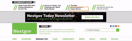 Сайт Nextgov без кнопки «Перейти к содержанию» и строгой структуры. На скриншоте можно увидеть, когда человеку проще нажимать Tab и прыгать по интерактивным элементам, чем навигировать мышью.