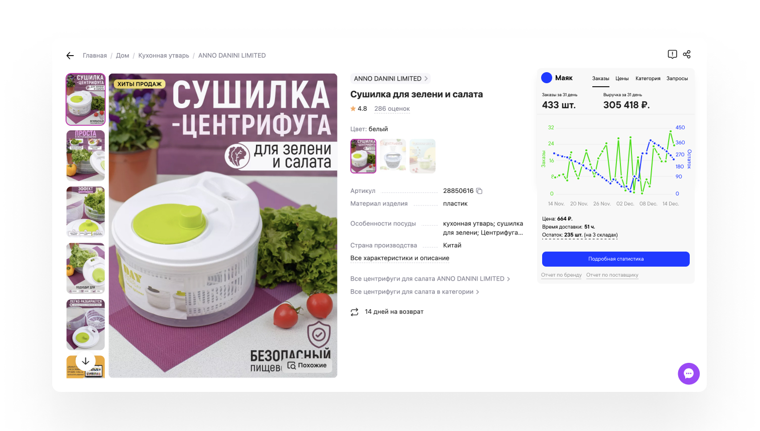 Важно также оптимизировать описание товара для поисковых систем, а также подбирать ключевые запросы для SEO-оптимизации. Чтобы подобрать ключи, можно воспользоваться сервисом аналитики для маркетплейсов