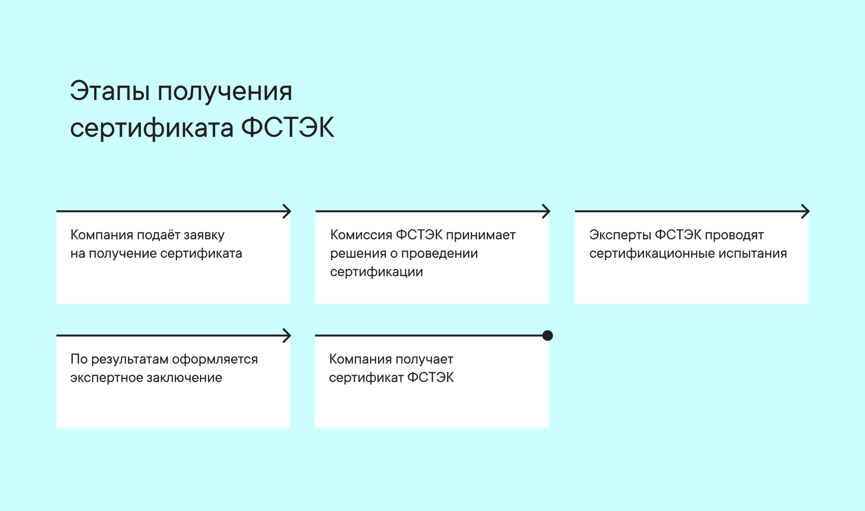 Для подтверждения безопасности новому сайту нужен сертификат от ФСТЭК. Этот процесс начинается с обращения в офис организации, после чего начнется детальное изучение портала, проведение тестирования, проверка на уязвимости и скрытые возможности.