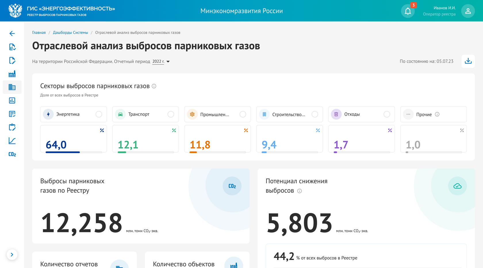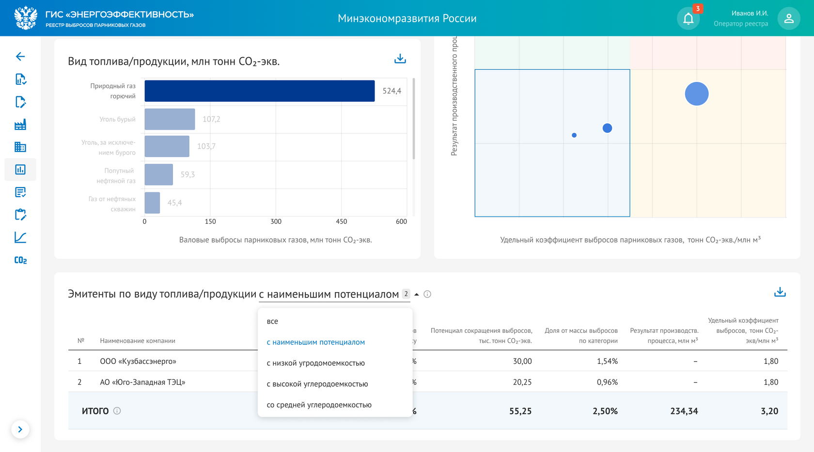 Дашборд «Отраслевой анализ выброса парниковых газов»