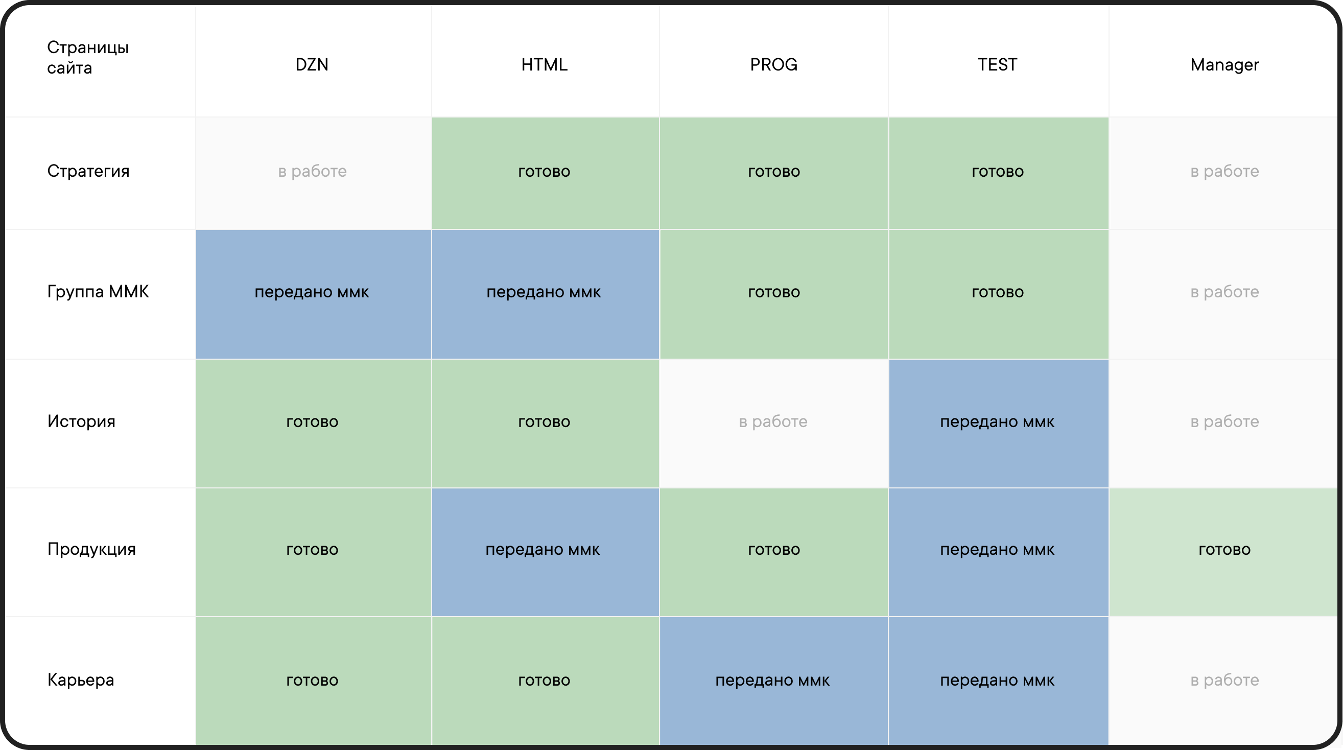 Детальная тепловая карта проекта отвечала за визуализацию прогресса работ.